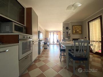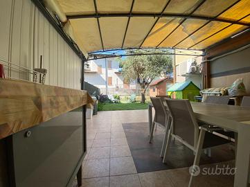Completa di area esterna privata, nello specifico giardino sul retro con orto ed un pergolato che crea uno spazio esterno coperto che lo rende vivibile in tutti i mesi dell'anno;
