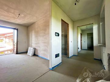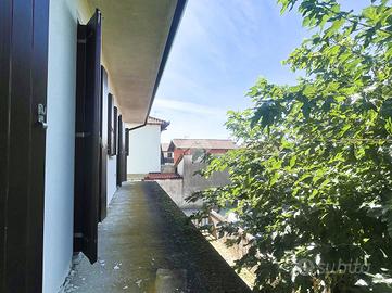 L'ingresso sul retro conduce invece al primo piano, dove si sviluppa un luminoso soggiorno open space con terrazzo e bagno di servizio. La zona notte comprende due camere da letto e un bagno finestrato con doccia. L'appartamento, anch'esso ristrutturato, necessita solo delle ultime finiture per essere completato ed è attualmente accatastato come F/3. A completare la proprietà vi è un posto auto coperto.