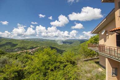 A Capradosso, Fraz. del comune di Petrella Salto (RI), proponiamo in vendita villa semi indipendente con giardino, campo da tennis, garage