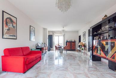 In zona residenziale, proponiamo in vendita imponente villa bifamiliare che si distingue per i suoi spazi generosi e ben distribuiti. Con una superficie complessiva di 731 mq, queste ville, entrambe su tre livelli oltre al piano garage, entrambe con ascensore e vano scala autonomo, offrono numerosi vani, ideali per chi cerca comfort e funzionalità. La proprietà, IDEALE PER DUE NUCLEI FAMILIARI, rappresentano un'opportunità unica per chi cerca una soluzione abitativa spaziosa e funzionale in una zona residenziale signorile e ben collegata.Al Piano Rialzato, accessibile dal livello stradale, troviamo la zona giorno principale: un salone luminoso con doppio accesso ai balconi terrazzati, una cucina, un vano lavanderia con accesso a un terrazzino e un bagno finestrato. La Zona Notte, situata al Primo Piano, offre tre camere da letto, di cui una con bagno padronale, oltre a un ulteriore bagno completo di box doccia a servizio delle altre stanze. La proprietà include anche una spaziosa tavernetta con camino e bagno di servizio, posizionata al Piano Seminterrato (livello superiore rispetto al giardino). Per una delle due ville, vi è dalla tavernetta l'accesso diretto ad un terrazzo con sfogo su un giardino privato. Completano l'immobile un locale garage di 166 mq (in comproprietà), situato al livello del giardino retrostante, perfetto per ospitare diverse autovetture, area esterna e sul giardino. Questa splendida proprietà si trova in un contesto residenziale caratterizzato da zone verdi lussureggianti, ideale per chi cerca tranquillità. Lo stato conservativo degli interni risulta essere in buone condizioni, la disposizione dei numerosi vani è studiata per ottimizzare gli spazi, rendendo l'abitazione perfetta per famiglie numerose o per chi desidera ampi ambienti.