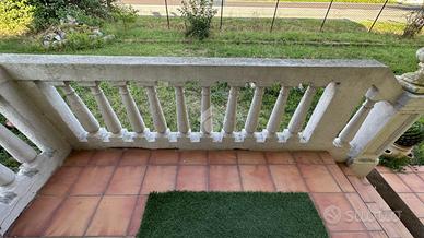 Al piano terra vi è il primo appartamento, con infissi in doppio vetro e zanzariere. Composto all'ingresso da ampio disimpegno, cucina abitabile con finestra, soggiorno luminoso, dove potersi rilassare, la camera da letto accogliente ed infine il bagno servito da box doccia. Inoltre vi sono due locali, attualmente adibiti come locali di sgombero, dove è possibile accedere direttamente al giardino sul retro, con sedie e tavolini dove godersi le belle giornate di sole.