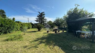Bifamiliare sita in una zona tranquilla, con ampio giardino, di cui 1000 mq di terreno industriale.Vi è la presenza, inoltre di un grazioso pozzo con pompa a immersione, con grondaie collegate per la raccolta dell'acqua piovana. Due passi carrai, per un accesso facile e sicuro.