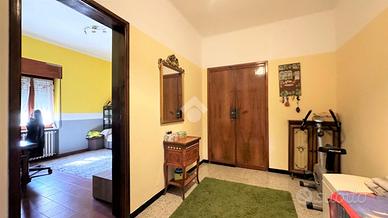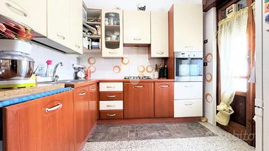 Mediante scale accediamo al piano superiore, dove vi è il secondo appartamento. All'ingresso un grande disimpegno, una cucina abitabile con tinello, dove tramite porta finestra possiamo accedere al balcone. La zona notte dispone di tre camere da letto di cui una matrimoniale e due camerette. A concludere un bagno servito da box doccia.