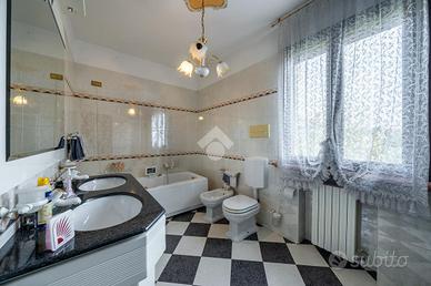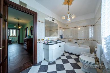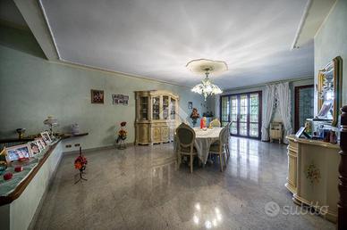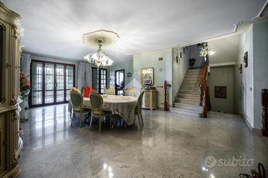 L'abitazione principale si sviluppa su 4 livelli, partendo dal piano terra troviamo la taverna open space con angolo cottura, lavanderia, cantina, e garage di 65 mq; Al piano terra presente un doppio salone con accesso dal porticato della villa, cucina abitabile e bagno di servizio, scala interna in marmo lucido, primo piano con tre camere da letto matrimoniali, di cui una con terrazzo e una con loggia, bagno con doppi servizi, inoltre è presente la camera padronale con bagno privato e terrazzo; All'ultimo piano dello stabile troviamo un unico ambiente mansardato con bagno, al grezzo, e due terrazzi.