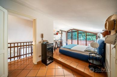 Al piano superiore si sviluppa la zona notte composta da tre camere da letto matrimoniali, un ampio bagno finestrato e una mansarda con ampia vetrata, istituita come quarta camera da letto, con accesso al balcone con il proprio bagno.