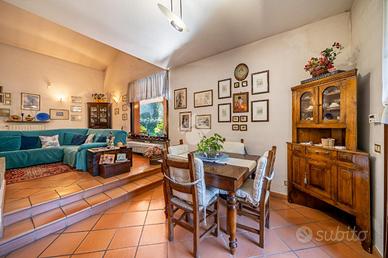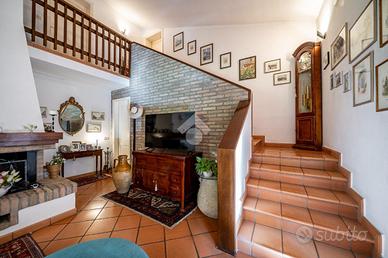 L'abitazione principale si distingue per l'ampiezza e la luminosità degli ambienti; l'ingresso si apre su un ampio soggiorno con camino collegato a una cucina abitabile separata. A completare il piano, una stanza versatile, ideale come studio, e un bagno di servizio ad uso lavanderia, pratico e funzionale.