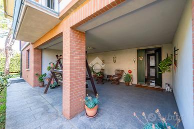 Il giardino avvolge l'abitazione e invita a godere di momenti all'aria aperta; è ben curato e adornato da alberi ad alto fusto che offrono ombra durante le calde giornate estive. Inoltre, lo spazio ampio permette di creare un'area giochi per i bambini, un'area relax e un angolo dedicato al b