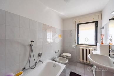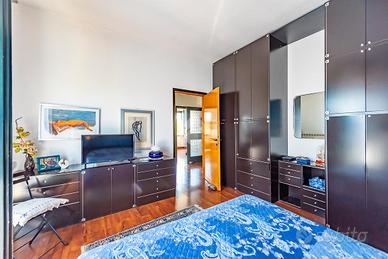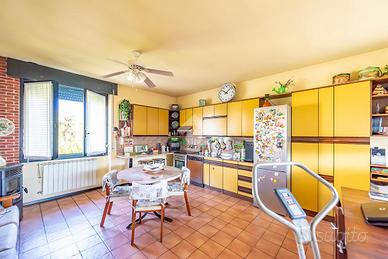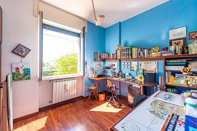 Al primo piano, si trova un ampio appartamento di quattro locali di circa 140 mq, composto da un soggiorno doppio, una grande cucina abitabile, tre camere da letto e un bagno. A disposizione, ci sono anche due balconi e un ampio terrazzo coperto, perfetto per pranzi all'aperto o momenti di relax.