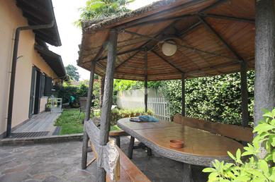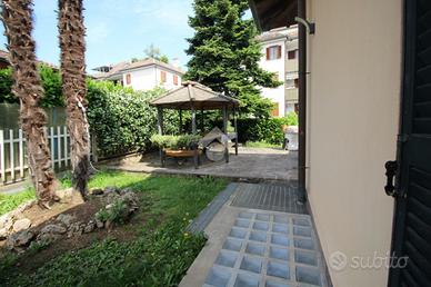 Completano la proprietà il giardino di circa 300 mq disposto sui tre lati dell'immobile, dotato di patio esterno ed il box doppio in larghezza.
