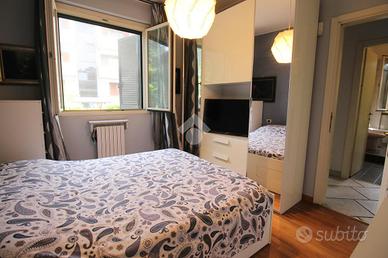 L'ingresso alla soluzione abitativa è direttamente nel soggiorno di generosa metratura con doppia esposizione EST-OVEST dal quale si accede ai vari locali.