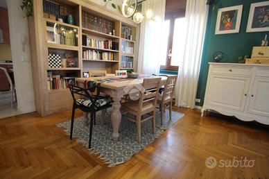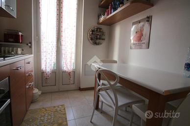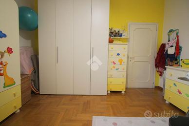 L'immobile al 1° piano è composto da: soggiorno doppio dotato di camino e reso luminoso dalla presenza del balcone, cucinotto anch'esso dotato di balcone, due ampie camere matrimoniale, bagno finestrato completo di sanitari e doccia e annessa pertinenza del sottotetto.