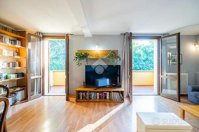 La seconda unità si sviluppa su due livelli. Al primo piano troviamo la zona giorno composta da un ampio ingresso con soggiorno ed accesso al balcone, cucina abitabile con dispensa ed accesso al secondo balcone, bagno con accesso alla loggia.