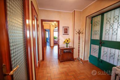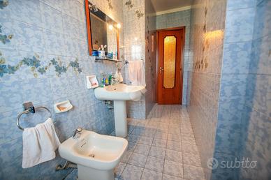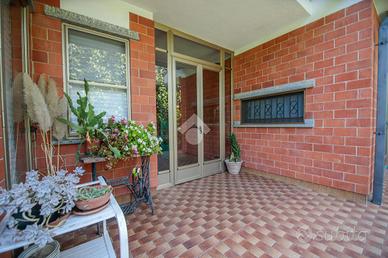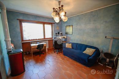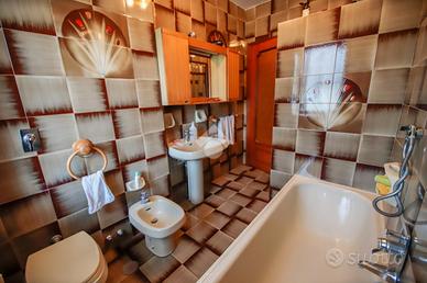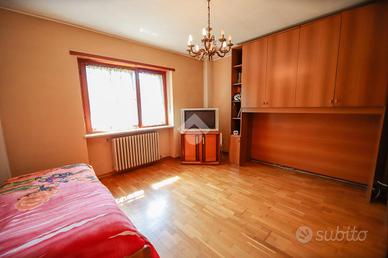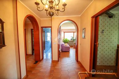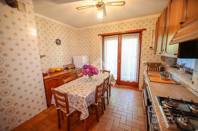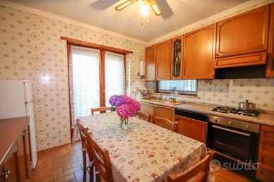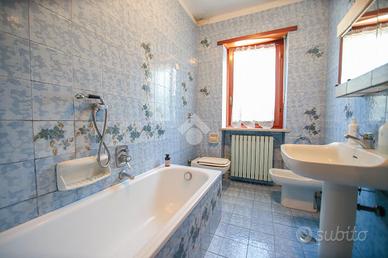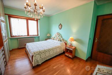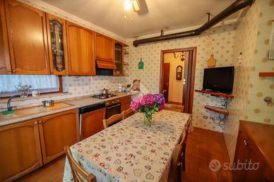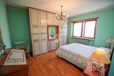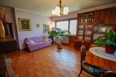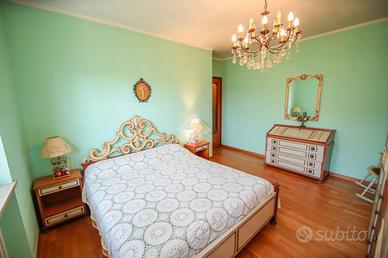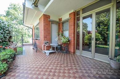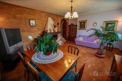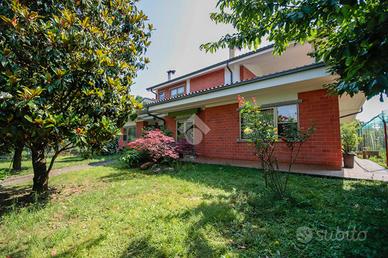 In grazioso contesto residenziale, precisamente nel 'Villaggio Paradiso' villa bifamiliare con ottima disposizione dei locali interni. L'ingresso alla proprietà è su ampio disimpegno che suddisivide le due unità abitative. La prima soluzione si compone di cucina abitabile con accesso diretto al giardino, di luminoso soggiorno con camino a legna, di ripostiglio, due camere da letto matrimoniali, di un bagno dotato di doccia, vasca e finestra ed un bagno di servizio anch'esso finestrato. L'altra unità abitativa si compone di tinello con cucinino, luminosa camera da letto matrimoniale e bagno con vasca. Il piano superiore, collegato da scala interna in muratura dispone di due camere da letto con affaccio sul terrazzo coperto, due locali ripostiglio, uno stenditoio ed un servizio con doccia. Al piano interrato è presente la tavernetta con caratteristico forno a legna, due cantine, il bagno con doccia e la lavanderia. L'area esterna è definita da giardino privato. Completa la proprietà il box auto triplo.