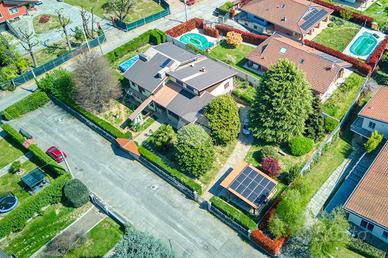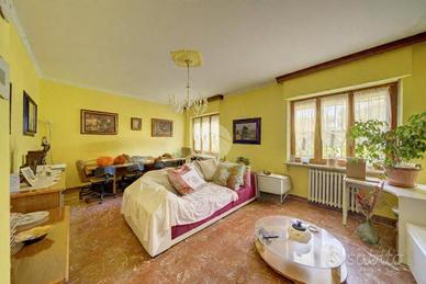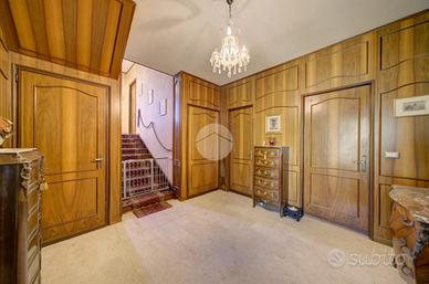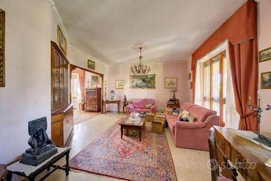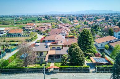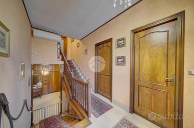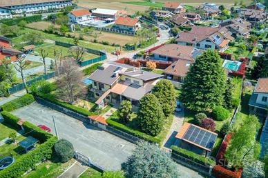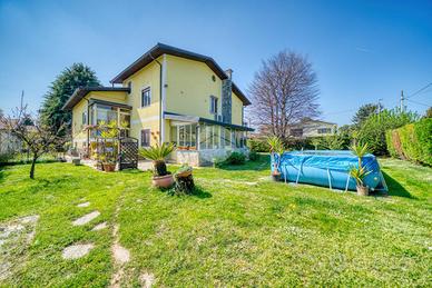 Tra le più belle e ricercate località di Rivoli, in posizione residenziale, proponiamo in vendita una villa unifamiliare o pluri familiare. La villa è disposta su tre livelli, oltre al piano seminterrato, per un totale di circa 354 mq. abitativi e 150 mq circa di locali accessori. Spazi ampi e versatili, ideali per ogni esigenza familiare. Circondata da alberi di alto fusto e da frutta, il lotto della villa misura 1.500 mq circa, l'accesso pedonale avviene tramite vialetto in pietra, mentre l'ingresso carrabile tramite cancello elettrico e stradina interna, offrendo sicurezza e praticità. Nel 2023 è stata realizzata una tettoia in legno lamellare ad uso ricovero auto, dove vi è un impianto fotovoltaico da 6 kw e batterie di accumulo di 10 kw, che agiscono sul fabbisogno totale della villa, presente anche una wallbox per auto elettrica. Cisterna di recupero acque piovane, cisterna di accumulo acqua potabile collegata con l'autoclave per garantire sempre acqua in casa. Uno spazioso atrio con boiserie in legno e angolo guardaroba, agisce come nucleo centrale della villa, dividendo e collegando le diverse zone ed i piani della casa. Al piano terreno, troviamo un salone, la sala da pranzo, la cucina abitabile con camino ed un bagno con vasca. Dal salone si accede al porticato esterno coperto ottimo per pranzi e cene all'aperto, mentre dalla cucina si accede al giardino. Salendo al primo piano, collegato da un'elegante scala interna in legno, dove sono presenti quattro camere da letto matrimoniali e altri due bagni, uno dei quali recentemente ristrutturato con termoarredo, box doccia doppio e soffitto ribassato con faretti. Parquet e ampie vetrate caratterizzano le camere. Dal piano terreno vi è la possiibilita di ricavare una seconda unità immobiliare indipendente, con accesso dal giardino, così da creare due nuclei familiari. Un'oasi di relax per vivere la casa in simbiosi con il verde. A completare gli ambienti nel piano seminterrato sempre collegato da scala inter.