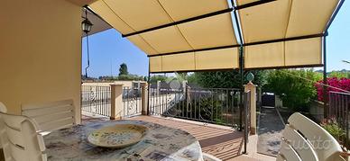 Madonnetta Villa BIFAMILIARE - APE A4 - in contesto riservato e nel verde a pochi passi da tutti i servizi primari. La villa è composta di quattro livelli. Al piano rialzato, si apre un ampio e luminoso salone doppio, un ambiente spazioso e arioso che gode di una vista diretta su entrambi i giardini. La cucina aperta sul salone si rivela ideale per chi ama cucinare in convivialità trascorrendo piacevoli momenti in famiglia. Un comodo bagno di servizio completa il piano. Dalla zona giorno si può accedere a due ampi patii ed ai giardini piantumati oltre ad una parte dedicata al BBQ. Salendo al primo piano, si trovano tre ampie camere da letto, di cui due con balcone privato, offrendo il privilegio di godere di momenti di tranquillità. La camera padronale è arricchita da un elegante bagno en suite, mentre un secondo bagno, dotato di vasca e doccia serve le altre due camere, garantendo il massimo del comfort. Al secondo piano, è presente un lavatoio, un locale stireria ed un terrazzo con vista sul verde. Completa la proprietà un piano seminterrato adibito con box auto di 45 mq. Cantina, hobby. La casa ha una doppia esposizione quindi è sempre arieggiata e luminosa. L'immobile si distingue per l'accuratezza dei dettagli, e la qualità dei materiali. L'ampia metratura interna ed esterna rappresenta una scelta ideale per famiglie in cerca di una residenza che sappia coniugare la quiete di un contesto verdeggiante con la comodità di essere ben collegata ad Ostia e a Roma. La villa vanta prestazioni energetiche eccellenti (Classe A4), grazie all'impianto fotovoltaico da 6 kW al riscaldamento a pavimento, climatizzazione e piani cottura a induzione. Le finiture sono di alta qualità: infissi in PVC doppio vetro, pavimenti in cotto e parquet nelle camere, persiane in ferro, serrande elettriche, portone blindato, e cancello carrabile automatico. VUOI VENDERE o AFFITTARE IL TUO IMMOBILE? Grazie alla profonda conoscenza del mercato locale da oltre 34 anni, siamo in grad