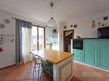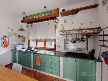 Vicino al salone troviamo un' ampia cucina abitabile, anch'essa in muratura ed altresì dotata di grande isola centrale. In cucina è presente una capiente dispensa e da ambo gli ambienti è possibile accedere alla gr