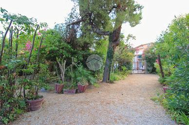 Questa villa si sviluppa su tre livelli fuori terra e un piano seminterrato ed è circondata da un ampio giardino verde.