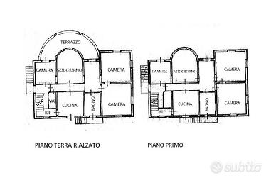 Al piano superiore troviamo la stessa disposizione del piano inferiore, un salone con cucina abitabile, tre camere da letto matrimoniali e un bagno padronale con vasca e doccia. Inoltre, c'è un terrazzo esposto ad est dove potrete godervi momenti di relax riservati.