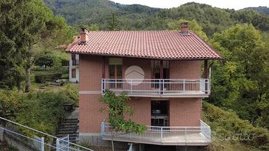 Completa la proprietà il giardino privato recintato che ciroconda la casa e l'ampio box auto al piano seminterrato, che può ospitare fino a tre macchine.