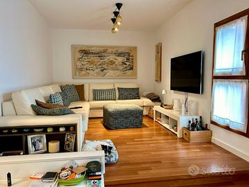 Zona S. Agostino proponiamo in vendita una spaziosissima e molto ben tenuta porzione di bifamiliare di 150 mq calpestabili composta da: ingresso su ampia taverna con stufa a pellet ottima per riscaldare tutta la zona giorno (Piano terra e primo), ripostiglio con predisposizione bagno, salendo le scale ci accoglie una luminosa zona living ben suddivisa tra angolo relax e zona pranzo, una grande cucina abitabile ed arredata e due terrazzi; al piano superiore si sviluppa la zona notte con camera padronale, bagno finestrato a servizio della stessa, camera singola ed un comodo bagno anch' esso finestrato, con vasca idromassaggio. A completamento della proprietà, un' ampia stanza mansardata adiacente ad un locale da adibire a studio o stanza armadi, un pratico ripostiglio ed una spettacolare terrazza panoramica. Giardino privato di 130 mq. e due posti auto.