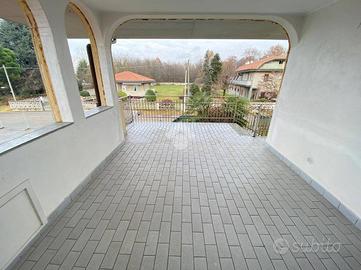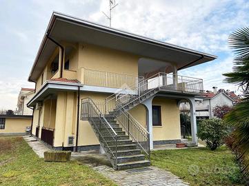 Casa indipendente disposta su due livelli, composta da due appartamenti con ingressi indipendenti tra loro, con al piano interrato un locale pluriuso e lavanderia, oltre a giardino piantumato. L'accesso carraio automatizzato presenta un'area pavimentata per accedere al box di 35 mq., posto nel retro dell'abitazione.