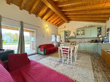 CONTATTARE IL NUMERO O RECARSI PRESSO LA NUOVA SEDE DI PIAZZOLA SUL BRENTA (PD) - VIA DEI CONTARINI, 28 GRAZIOSA PORZIONE DI BIFAMILIARE COMPLETAMENTE ARREDATA IN VENDITA A SAN GIORGIO IN BOSCO - FRAZIONE SANT'ANNA MOROSINA!!! Nella frazione di Sant'Anna Morosina, situata in un tranquillo contesto residenziale immerso nel verde ma comodo al raggiungimento di Cittadella o San Martino di Lupari proponiamo un'abitazione, completata nel 2021 e sviluppata su due livelli che si distingue per l'ampio scoperto di proprietà di circa 2100 mq. Al piano terra l'ingresso apre nel disimpegno con scala interna che conduce al piano primo dove troviamo il piano abitativo principale dell'immobile. Al piano terra troviamo una comoda depandance dotata di riscaldamento, condizionamento e cucina, il tutto travato a vista e dotato di ampie vetrate con uscita nel comodo portico, ideale per mangiare all'aperto. Il piano terra è completato da un grande bagno dotato di box doccia con annessa lavanderia/centrale termica e una stanza con accesso esterno. Il piano primo ospita la luminosa zona living con cucina open space e terrazzo rivolto a sud, perfetto per godere della luce naturale durante tutta la giornata. La zona notte comprende tre ampie camere matrimoniali, una delle quali attualmente adibita a sala cinema/studio, oltre a un bagno finestrato con doccia e predisposizione per la lavatrice. L'immobile offre un elevato comfort abitativo grazie al riscaldamento a pavimento, al condizionamento presente in tutti gli ambienti, alla rete internet cablata e alle zanzariere installate su tutte le aperture. È inoltre dotato di impianto d'allarme perimetrale e volumetrico, pannelli solari per un maggiore risparmio energetico e viene consegnato completamente arredato, pronto per essere abitato senza ulteriori interventi. Una soluzione moderna, immersa nel verde e ideale per chi cerca tranquillità senza rinunciare alla comodità dei principali servizi.