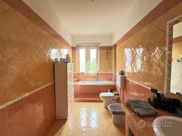 Situata in zona Oltre Po' in una tranquilla via interna chiusa, proponiamo in vendita villa bifamiliare circondata da un ampio cortile privato di circa 200 mq. L'immobile si sviluppa su più livelli. Il piano seminterrato è composto da un box auto e tre locali cantine. Al piano rialzato e al primo piano sono presenti due ampi alloggi. L'appartamento al piano rialzato è composto da un lungo disimpegno d'ingresso che divide una cucina abitabile, soggiorno, tre camere, un bagno e una lavanderia. Da ristrutturare a seconda dei propri gusti, ad esclusione degli infissi già in PVC con doppi vetri, rimane libero su quattro lati e presenta una pianta squadrata ideale per gestire facilmente gli spazi a seconda delle proprie esigenze. Al primo piano l'immobile si compone di un ampio alloggio totalmente ristrutturato nel 2005. L'ingresso tramite porta blindata con cilindro EU è diretto sul disimpegno suddiviso a sua volta da un basso muretto dall'ampio soggiorno illuminato da due porte finestre a condurre a un balcone che si sviluppa lungo la facciata interna della casa. La cucina è abitabile con accesso a un proprio balconcino. La camera matrimoniale è luminosa con bagno privato finestrato completo di doccia e termoarredo e cabina armadio. Il bagno principale anch'esso finestrato è completo di vasca e lavandino in muratura. Un'ulteriore stanza, ad oggi adibita a sala svago e gioco, può essere sfruttata all'occorrenza come studio o cameretta. Completa l'immobile un comodo ripostiglio con attacco per la lavatrice e botola d'ispezione per raggiungere il sottotetto. Tutti gli infissi sono in PVC con doppi vetri. Il riscaldamento è autonomo a metano per entrambi gli alloggi con caldaia unica a condensazione. Il tetto ha subito diversi interventi di manutenzione e ristrutturazione: nel 2013 son state riviste le travi con sostituzione di alcuni listelli. Tre anni fa sono stati eliminati e sostituiti i coppi danneggiati ed è stato rivisto anche il cornicione. All'