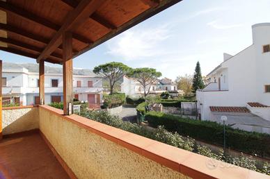 San Nicola Arcella, Via del Telegrafo, Parco Aplysia, Villa bifamiliare composta da 2 appartamenti autonomi, separati da scala esterna, entrambi composti dal proprio soggiorno, cucinino, 2 camere da letto, bagno con finestra e corridoio. L'appartamento di sopra dispone inoltre di balconata e ampio terrazzo, entrambi coperti da tettoia in legno lamellare. Il piano terra ha 2 patii, uno anteriore e l'altro posteriore. Entrmbi gli appartamenti dispongono di 2 climatizzatori. La villa ha quasi 200 mq di corte esclusiva adibita in parte a verde, con piante ed alberi, in parte pavimentata, un magazzino esterno da utilizzare come deposito attrezzi, 2 docce e 2 bagnetti in muratura. Nella corte è inoltre presente un comodo parcheggio coperto che può ospitare diverse autovetture. Ideale per due famiglie o, con qualche piccola modifica, come prima abitazione. Si vende arredata.