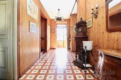 Divisa in tre piani troviamo, nel seminterrato: il locale caldaia, la cantina , la lavanderia ed un locale di sgombero; mentre al piano terreno ci imbatteremo nell'ingresso che divide uno studio dalla cucina, il soggiorno e il salone con il balcone, spostandoci verso Ovest troveremo il bagno ed un disimpegno che ci divide da un secondo bagno e tre camere da letto di cui due con balcone annesso; tramite una comoda scala interna ubicata nel soggiorno si può raggiungere il primo piano dove verso Est troveremo un appartamento composto da ingresso, bagno, e soggiorno con angolo cottura munito di porta finestra che affaccia direttamente su un terrazzo di 35 metri quadri; sempre al medesimo piano spostandoci verso Ovest possiamo intravedere una parte di sottotetto non abitabile con anch'esso tre porte finestre che affacciano sul terrazzo citato precedentemente.