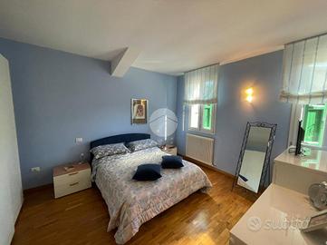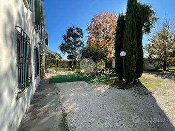 SANT'AGATA SUL SANTERNO: proponiamo in vendita una spaziosa bifamiliare di 310 mq. L'immobile, ristrutturato nel 2002 e nel 2023, si divide in due appartamenti sviluppati su due livelli. Una delle due porzioni presenta al piano terra ingresso con lavanderia e cantina, al piano superiore lo spazio destinato ad abitazione composto da ampio salone, sala, cucina abitabile, camera da letto, bagno e ripostiglio. La seconda porzione, attualmente locata fino al 2029, presenta al piano terra: ingresso, soggiorno, sala da pranzo, cucina abitabile, lavanderia e bagno, al piano superiore la zona notte composta di tre camere da letto e bagno. Completano l'offerta un pergolato, due posti auto coperti esterni ed il deposito. Il giardino privato di oltre 3500mq rappresenta un'oasi di tranquillità, perfetta per momenti di relax all'aperto.