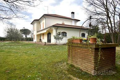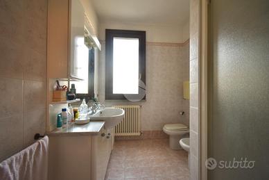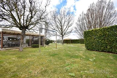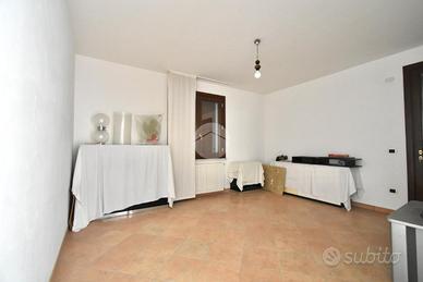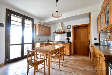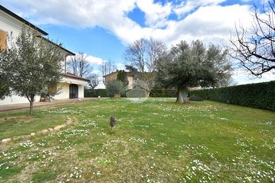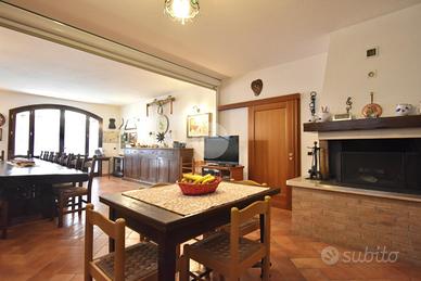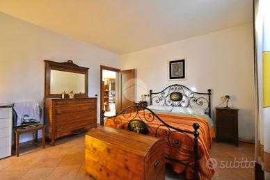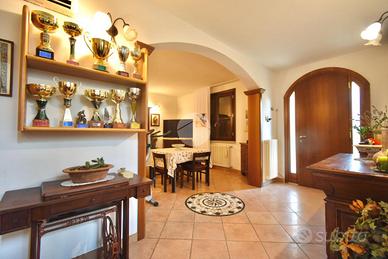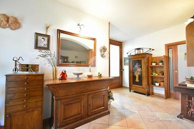 Al piano terra troviamo un ampio e luminoso ingresso che ci accompagna nel soggiorno con camino di 45 mq, un bagno padronale finestrato con box doccia in muratura di circa 6 mq ed una cucina abitabile di circa 16 mq che affaccia sul retro della corte. Il piano ospita uno studio di 20 mq, tre camere da letto, di cui una doppia di circa 13 mq, una matrimoniale di circa 16 mq con bagno en suite valorizzato da vasca idromassaggio e doccia in muratura e l'altra camera di circa 19 mq. L'ampio soggiorno presenta una tenda elettrica motorizzata e isolante per creare a proprio piacimento un'ulteriore sala separata e il camino è dotato di aria canalizzabile che permette di far arrivare l'aria calda in tutte le stanze della casa tramite bocchette. L'appartamento al piano terra presenta, inoltre, inferriate in tutte le finestre.