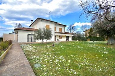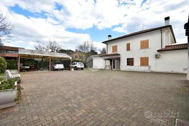 SANTARCANGELO, zona San Bartolo: a 5 minuti da Piazza Ganganelli e vicino a tutti i principali servizi, bifamiliare indipendente disposta su due livelli, ristrutturata nel 2002, con 3.000 mq di giardino e 5.000 mq di terreno agricolo.