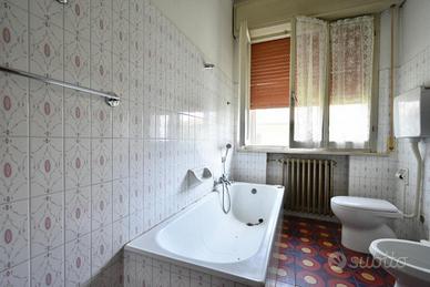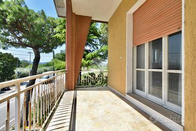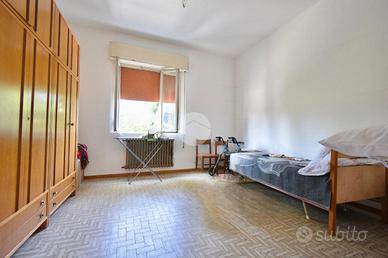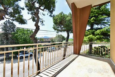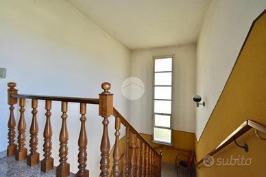 Dalla scala in muratura interna, si accede al piano primo, dove si sviluppa un secondo appartamento: un soggiorno separato di 17 mq con accesso al balcone, una cucina abitabile anch'essa con balcone e vista panoramica sul verde, tre camere da letto, di cui due da 15 mq e una da 17 mq ed un antibagno e bagno finestrato con vasca.