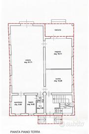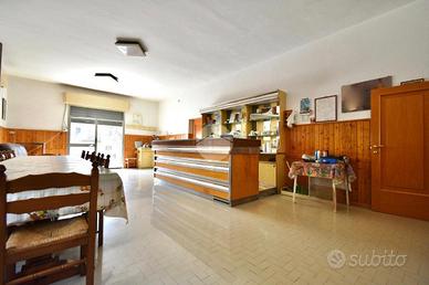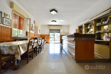 Al piano terra troviamo un ambiente di circa 52 mq, adibito ad osteria che può essere riconvertito in zona giorno o in uno spazio conviviale. Sempre su questo livello, una cucina abitabile separata di 15 mq, un cucinotto, una camera matrimoniale di 19 mq e due bagni, di cui uno di servizio ed uno finestrato con box doccia.