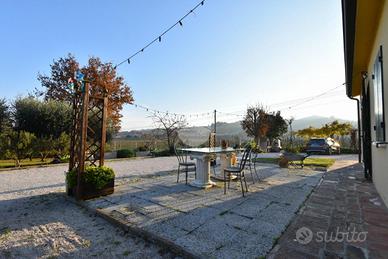 SANTARCANGELO DI ROMAGNA - Canonica / Montalbano In posizione tranquilla, immersa nel verde della campagna e con splendida vista panoramica sulle colline, bifamiliare di ampia metratura in stile rustico, ideale per chi desidera privacy, indipendenza e grandi spazi a pochi minuti dal centro di Santarcangelo. La proprietà, costruita negli anni '90 e mantenuta in ottime condizioni con rifiniture di pregio, è circondata da un giardino privato di circa 3.000 mq. Si sviluppa su due livelli e comprende due appartamenti indipendenti con ingresso autonomo, portico coperto di circa 40 mq, due tavernette e ampio garage di proprietà. Prima unità abitativa: Al piano terra ci accoglie un luminoso soggiorno con sala da pranzo di circa 34 mq, cucina abitabile separata di 13 mq e bagno finestrato con box doccia. La zona notte, al piano primo, è composta da tre camere da letto, di cui una matrimoniale con cabina armadio e due doppie, e bagno finestrato con box doccia multifunzione. Completa l'unità un ampio ambiente al piano terra di circa 70 mq, con altezza 2,72 m, già dotato di due bagni finestrati e lavanderia, ideale come tavernetta o ulteriore appartamento. Seconda unità abitativa: E' caratterizzata da un'atmosfera calda e accogliente, dispone di soggiorno di circa 40 mq con camino, cucina abitabile separata di 14 mq e bagno con box doccia. Al piano primo si sviluppa la zona notte con tre camere da letto e bagno finestrato con vasca idromassaggio. A valorizzare la soluzione, tavernetta in corpo staccato di circa 27 mq con angolo cottura, camino e forno, ideale per momenti conviviali. Dotazioni: - garage di 45 mq in corpo staccato - riscaldamento termo-idraulico - infissi in PVC con doppio vetro - portone blindato - aria condizionata - camino a legna - barbecue esterno in muratura - zanzariere in ogni finestra - scuroni in legno Soluzione ideale per famiglie numerose o per chi cerca una casa indipendente con ampie metrature, immersa nella natura ma com