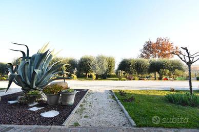 La proprietà, costruita negli anni '90 e mantenuta in ottime condizioni con rifiniture di pregio, è circondata da un giardino privato di circa 3.000 mq. Si sviluppa su due livelli e comprende due appartamenti indipendenti con ingresso autonomo, portico coperto di circa 40 mq, due tavernette e ampio garage di proprietà.
