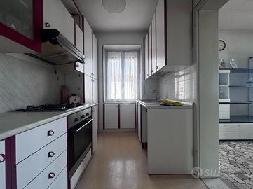 Gli interni, ben distribuiti e ricchi di luce naturale, offrono una zona giorno di circa 30 mq, con cucina e soggiorno separati, due camere matrimoniali di generose dimensioni (circa 18 mq ciascuna) e bagno finestrato.