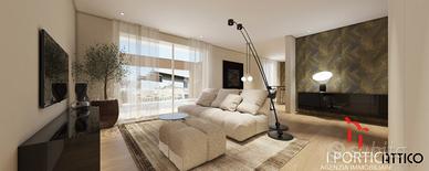 Varcando l'ingresso si viene accolti da una splendida zona giorno di circa 44 mq., luminosa e ariosa, impreziosita da ampie vetrate, che si aprono sul giardino privato: lo spazio ideale per vivere momenti di relax.