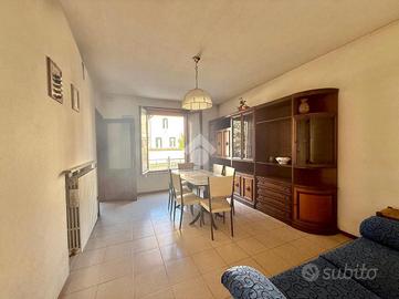 L'abitazione si sviluppa su due livelli: al primo piano troviamo una luminosa zona giorno con cucina, soggiorno e bagno, mentre al piano superiore si apre la zona notte, composta da due camere da letto e un secondo bagno.