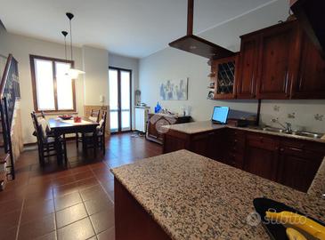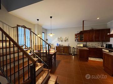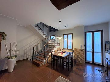 L'abitazione si sviluppa su più livelli: al piano terra troviamo un'ampia cucina abitabile, una lavanderia e un bagno di servizio. Al piano superiore si trovano un luminoso soggiorno con balcone, due camere da letto e un bagno. Completa la parte residenziale una spaziosa taverna con ripostiglio e doppio ingresso.