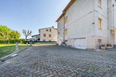 Completano l'immobile i bassi servizi; la cantina, due garage di cui uno doppio, lavanderia e locale tecnico.