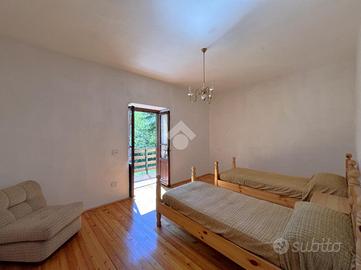 Taceno - Valsassina, immersa nel verde e nella tranquillità della montagna, proponiamo una caratteristica bifamiliare di circa 217 mq, costruita circa nel 1900 e disposta su tre livelli. L'immobile è situato in posizione riservata, raggiungibile tramite una strada semi-sterrata, e circondato da ampi appezzamenti di terreno di proprietà, ideali per chi ama la natura, l'autosufficienza o desidera uno spazio esterno per animali, orti o relax. La casa è composta da due trilocali con ingressi indipendenti, perfetti per due nuclei familiari, per l'affitto turistico o per chi desidera mantenere vicini ma autonomi i propri cari. Piano terra: spazioso locale cantina/taverna ampio e versatile, perfetto come zona hobby, deposito o taverna rustica. Primo piano: trilocale con ingresso, soggiorno con camino e accesso al balcone panoramico da cui si gode una splendida vista sulla valle, cucina separata, camera matrimoniale anch'essa con uscita sul balcone, seconda camera e bagno finestrato con vasca. Secondo piano: secondo trilocale speculare al primo, dotato inoltre di accesso a un ampio locale sottotetto (raggiungibile con scala retrattile) che conduce a un ampio locale sottotetto adibito a ripostiglio. Completano la proprietà un comodo box auto e ampi terreni privati, ideali per chi cerca una seconda casa o una residenza stabile a contatto con la natura. Una soluzione unica per chi sogna tranquillità, privacy e spazio, senza rinunciare alla solidità di una casa ben strutturata.