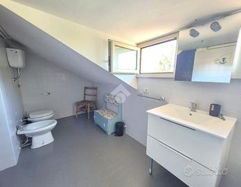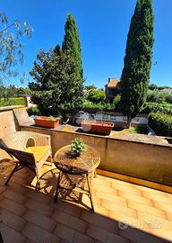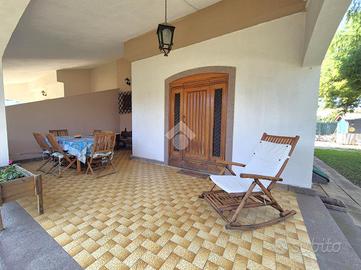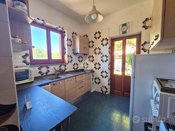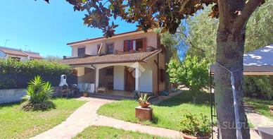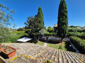 All'interno del consorzio residenziale privato di Marina Velca Golf, immerso nel verde e distante 1,5 km dal mare, proponiamo in vendita una porzione di villa bifamiliare situata in posizione comodissima per raggiungere a piedi in pochi minuti la piazzetta con i suoi servizi, il campo da golf, il resort e la piscina. La villa ha a disposizione un favoloso giardino di 350 mq con diversi alberi ornamentali, una zona relax nel verde ed una parte pavimentata per poter parcheggiare internamente più auto. Infatti dispone di doppio accesso da due differenti vie, uno pedonale e l'altro carrabile. Un bel portico frontale ci accoglie all'ingresso, ideale per mangiare fuori, mentre internamente il piano terra è tutto dedicato alla zona giorno e comprende un salone con camino, un comodo cucinotto con uscita sul portico laterale ed un bagno a servizio. Una comoda scala conduce alla zona notte composta da due camere matrimoniali, di cui una dotata di balcone con vista panoramica sul verde, una ampia cabina armadio, un bagno con vasca e un ripostiglio sottotetto. La villa al piano seminterrato dispone di una spaziosa cantina, dotata di più ambienti, accessibile sia da una scala a chiocciola interna che dall'esterno. La soluzione si trova in buono stato di manutenzione ed è termoautonoma, viste le caratteristiche risulta adatta anche per viverci tutto l'anno.