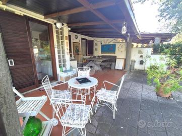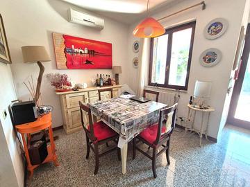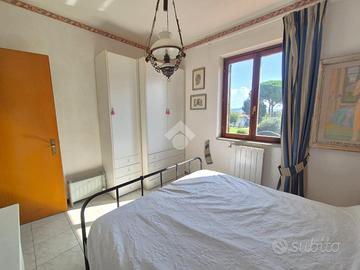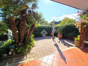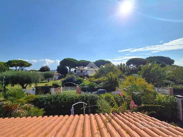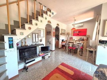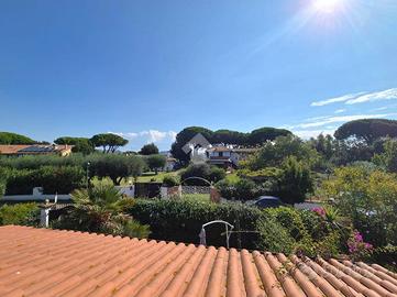 All'interno del consorzio residenziale privato di Marina Velca Golf, immerso nel verde e distante 1,5 km dal mare, proponiamo in vendita una porzione di bifamiliare situata in ottima posizione, a pochi minuti a piedi dal centro del consorzio con tutti i suoi servizi. Questa proprietà, costruita nel 1991, si estende su due livelli, è circondata da un gradevole spazio esterno pavimentato di circa 280 mq, con diverse aree verdi e piante ornamentali, e dispone di doppio ingresso pedonale e carrabile con possibilità di parcheggiare all'interno due auto. I portici della villa sono due, uno comodo all'ingresso ed uno più ampio sul retro per ospitare pranzi e cene all'aperto. Internamente il piano terra si compone di un grazioso soggiorno con camino, un pratico cucinotto, una cameretta singola ed un bagno con doccia. Il primo piano ospita una seconda cameretta singola, una camera matrimoniale con fantastica vista sul verde consortile ed un secondo bagno completo con doccia. La villa si trova in ottimo stato di manutenzione, è termoutonoma con caldaia nuova a condensazione, climatizzata, gli infissi sono in legno doppio vetro camera ed è inoltre dotata di un nuovo impianto di allarme perimetrale. Viste le caratteristiche la villa risulta ideale sia come abitazione principale per un piccolo nucleo familiare sia come casa vacanza. La vicinanza al campo da golf rappresenta un valore aggiunto per gli appassionati di questo sport, mentre la località di Marina Velca offre un ambiente naturale e rilassante.