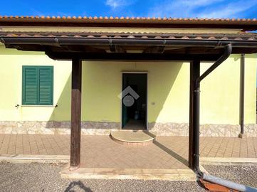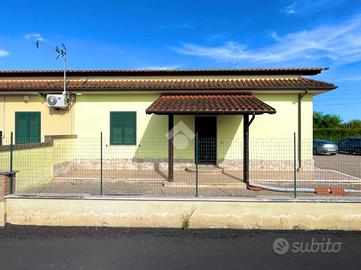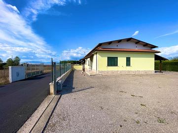 Proponiamo in esclusiva la vendita di una porzione di villa bifamiliare, libera su tre lati, di circa 120 mq., situata in una zona residenziale tranquilla e riservata, dalla strada principale, ma facilmente raggiungibile grazie alla strada di accesso recentemente asfaltata, che garantisce comodità e ordine anche nei mesi più piovosi. La casa è di recente costruzione e non è mai stata abitata. Si presenta in condizioni eccellenti, con pavimentazione nuova, infissi in alluminio con doppi vetri, persiane anch'esse in alluminio, portone blindato e impianti completamente nuovi. Il riscaldamento è autonomo, con elementi in alluminio moderni ed efficienti. Sono assenti solo le porte interne, lasciando la possibilità di personalizzarle secondo il proprio gusto. L'abitazione è ben suddivisa in ambienti comodi e funzionali. L'ingresso si apre un soggiorno accogliente, mentre la cucina, spaziosa e luminosa, ha un accesso diretto alla parte retrostante del giardino, ideale per organizzare pranzi all'aperto o momenti di relax. La zona notte è composta da tre camere da letto: una matrimoniale con bagno privato, una camera singola e una cameretta. A completare gli interni, un secondo bagno con finestra. All'esterno, la proprietà è circondata da un ampio giardino privato di circa 1.000 mq., in parte verde per circa 550, perfetto per chi desidera vivere a contatto con la natura o ha necessità di ampi spazi esterni. Due tettoie, una posizionata all'ingresso e l'altra sul retro, offrono ulteriori zone ombreggiate e versatili. Sono presenti anche dotazioni tecniche fondamentali come il bombolone interrato per il gas, un pozzo per l'approvvigionamento dell'acqua e un impianto di scarico con fossa a dispersione. Grazie alla metratura generosa, alle ottime condizioni interne ed esterne e alla posizione strategica, questa soluzione rappresenta un'ottima scelta come abitazione principale, adatta a famiglie o a chi è in cerca di un contesto residenziale tranquillo ma ben colle