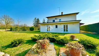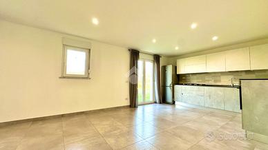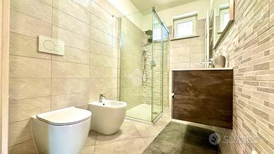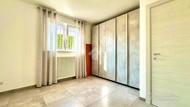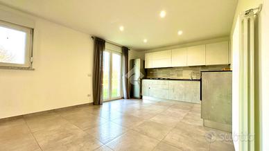 Il pian terreno è composto da una taverna adibita come cucina open space con vetrate che danno sul giardino, due camere da letto, un bagno e una lavanderia.