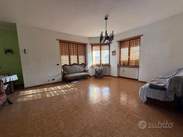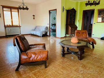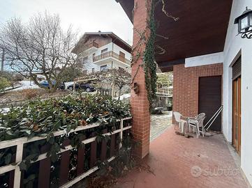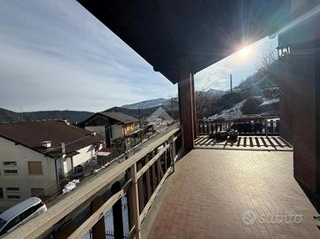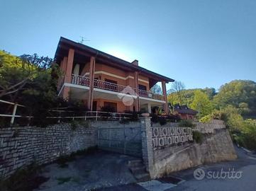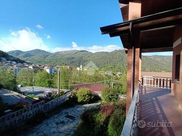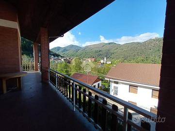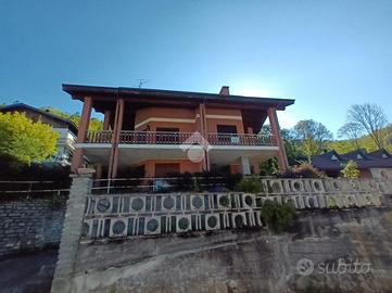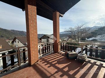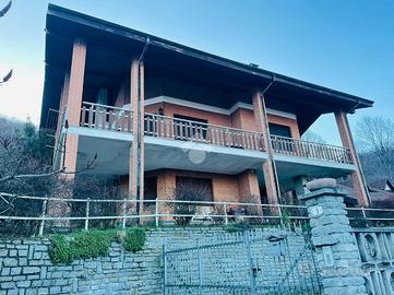TRAVES: nei pressi della piazza del paese, villa indipendente con predisposizione per bifamiliare. Al piano terreno ampi locali uso box auto, cantine e centrale termica. Sempre al piano terreno un locale uso tavernetta con BBQ adiacente. Al piano superiore il prim alloggio è composto da un ingresso, Il salone luminoso con camino e accesso all'ampio terrazzo con vista panoramica. La cucina abitabile ha l'accesso diretto al giardino e al terrazzo. Zona notte con due camere da letto e ampio bagno. Completa il piano un secondo bagno di servizio. Al piano superiore, accessibile da una comoda scala interna, il secondo alloggio mansardato con balcone panoramico. L'alloggio è composto da un ingresso su un disimpegno, una zona soggiorno con angolo cottura con piccolo soppalco. Zona notte con una camera da letto e bagno. Il riscaldamneto è autonomo con caldaia a gasolio. Completa la proprietà un giardino di circa 3000 mq.