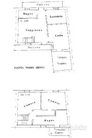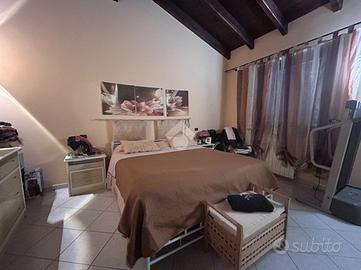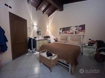 Mediante una scala interna si accede al piano superiore, un secondo piano mansardato. Qui si sviluppa la zona notte, composta da due camere da letto -- una matrimoniale e una singola -- e un ampio bagno con doccia. Anche questo livello è dotato di un terrazzino, che dona ulteriore luminosità agli spazi.