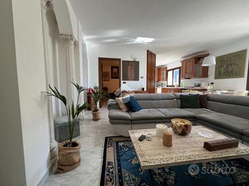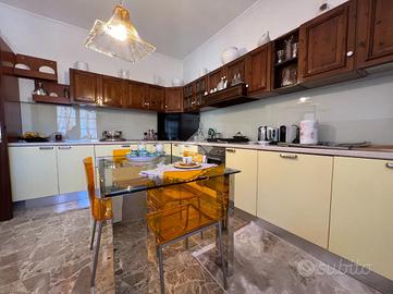 Via Gallardi, nella zona panoramica di Ventimiglia, villa bifamiliare con sfogo esterno privato. La soluzione è libera sui tre lati e costituita da due appartamenti con ingressi indipendenti, uno al piano terra ed uno al primo piano. La zona esterna, fatta di terrazzi e parti di verde privato attualmente in condivisione, è facilmente divisibile grazie alla sua disposione. La villa gode di una recente e moderna ristrutturazione interna ed è anche riadattabile a villa singola. La porta d'ngresso del piano terra permette l'accesso su un soggiorno doppio living con cucina a vista e zona pranzo, ambiente che accompagna ai restanti locali dell'appartamento. Le camere da letto sono due di cui una attualmente adibita a studio, la sala da bagno è di generose dimensioni, con materiali di pregio e dotato di box doccia. E' presente un pratico ripostiglio ed un terrazzo di generose dimensioni con un buon grado di privacy e con vista panoramica della zona, ideale per le cene o i pranzi all'aperto. La porta d'ingresso del secondo appartamento al primo piano è raggiungibile da una comoda scala esterna e apre su un lungo disimpegno, su cui affacciano tutti i locali dell'alloggio. La cucina è abitabile, i soggiorno luminoso e le due camere da letto sono spaziose. Il bagno è finestrato, completamente rifinito in marmo e dotato di box doccia. Sul disimpegno ha affaccio un pratico ripostiglio e l'alloggio gode di uno spazioso balcone con vista panoramica su Ventimiglia e sul mare. Al piano superiore una cucina estiva ben collegata ad un terrazzo intimo e spazioso. La villa gode di riscaldamento autonomo ed impianto di condizionamento. Completano la proprietà quattro posti auto siti nella parte frontale della villa. La soluzione è in posizione soleggiata ed immersa nel verde, ma senza rinunciare ai primi servizi offerti da Ventimiglia.