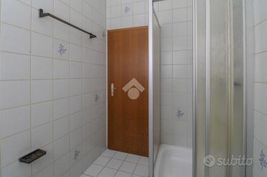 Si accede al primo bilocale con ingresso indipendente tramite portoncino, trovando la zona giorno open-space, un bagno finestrato con doccia e camera da letto matrimoniale.